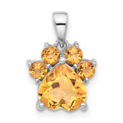 Sterling Silver Rhodium-plated Polished Citrine Paw Pendant
