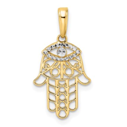 14k and White Rhodium Diamond-cut Filigree Evil Eye Hamsa Pendant