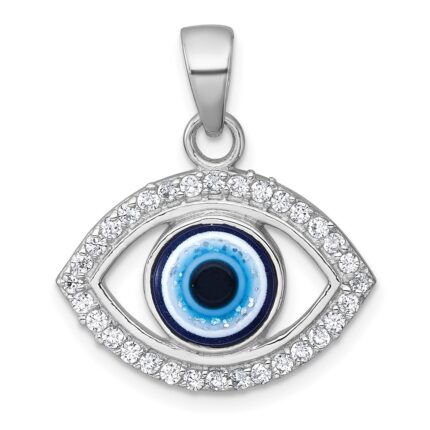 Sterling Silver Rhodium-plated Polished CZ and Glass Stone Evil Eye Pendant