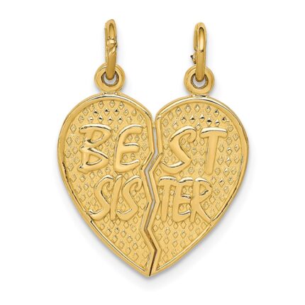 14k BEST SISTER 2-Piece Break-apart Heart Charm