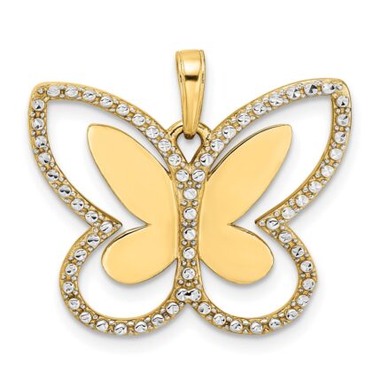 14k and Rhodium Diamond-cut Polished Cut-out Butterfly Pendant