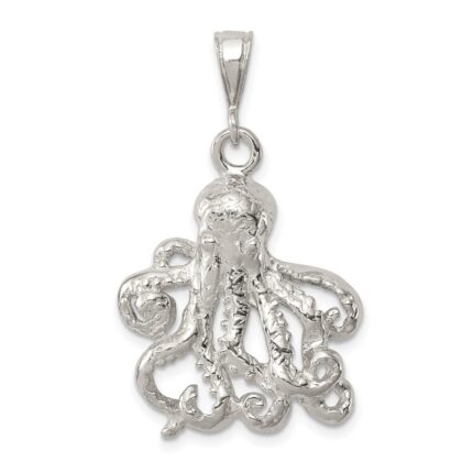 Sterling Silver Rhodium-Plated Polished and Brushed Octopus Pendant