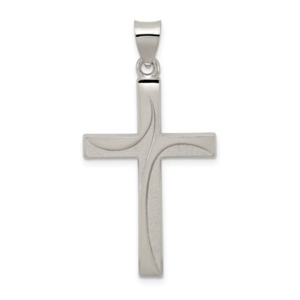 Sterling Silver Satin Finish Diamond-cut Cross Pendant