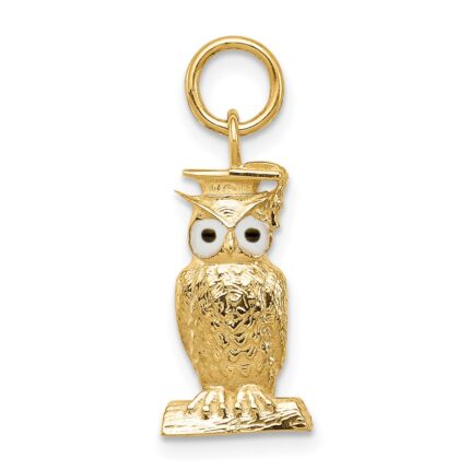 14K Enameled Graduation Owl Charm