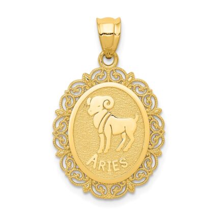 14k Solid Satin Polished Aries Zodiac Oval Pendant