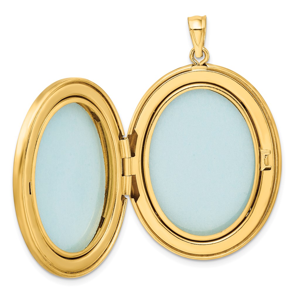 1/20 14K Gold Filled 34mm Polished/Satin Leaf Border 2-Frame Oval Locket