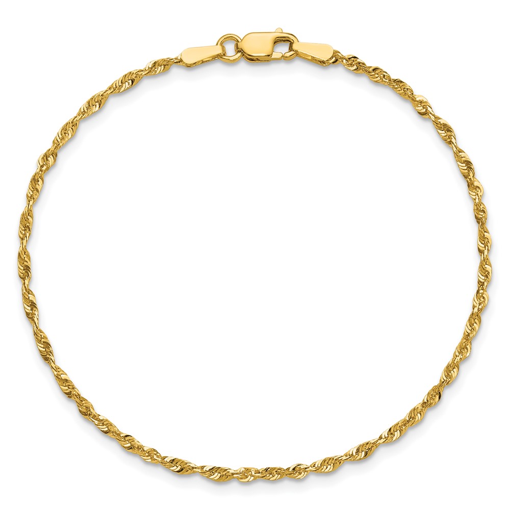 14K 2.25mm Diamond-cut Rope with Lobster Clasp Anklet