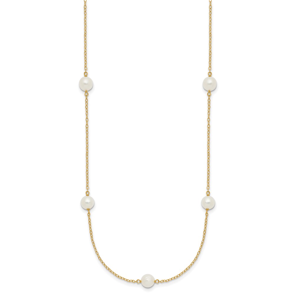 10K 5-6mm White Near Round Freshwater Cultured Pearl 7-Station 16 inch Necklace