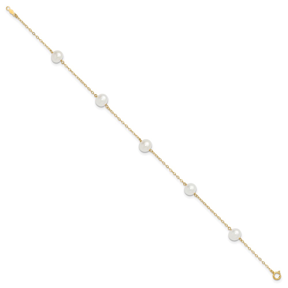 10k 7-8mm White Near Round Freshwater Cultured Pearl 5-station Anklet