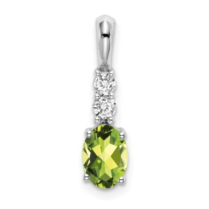 14k White Gold 7×5 Emerald-cut August/Peridot and Diamond Pendant