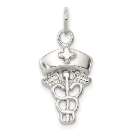 10k White Gold Caduceus Pendant