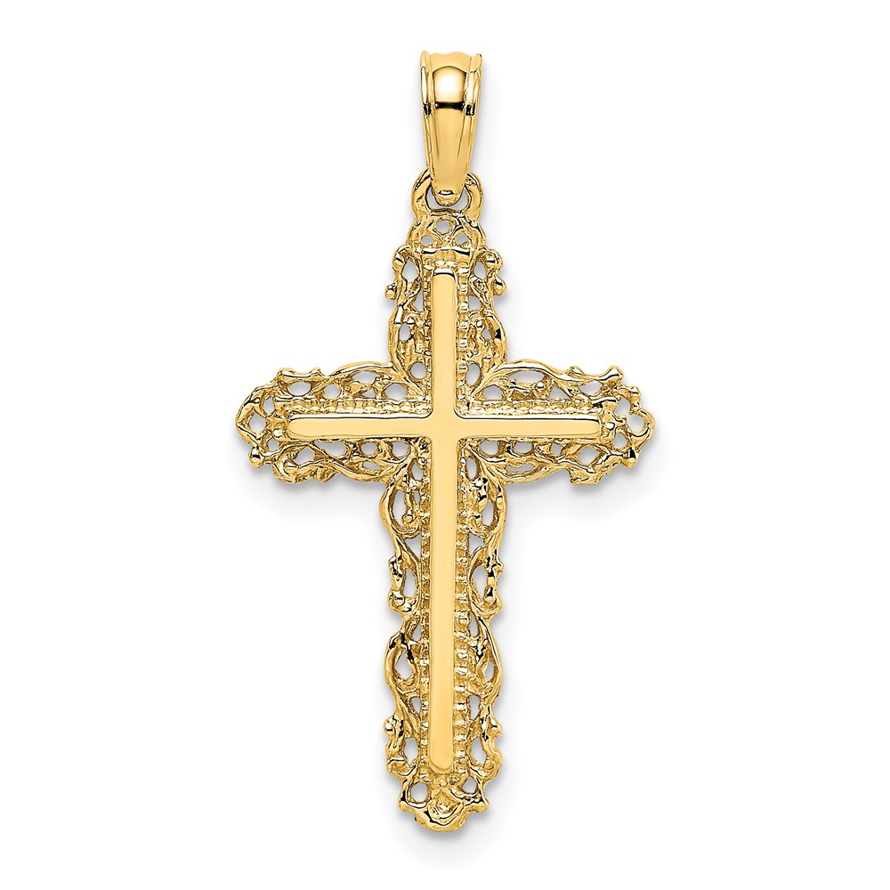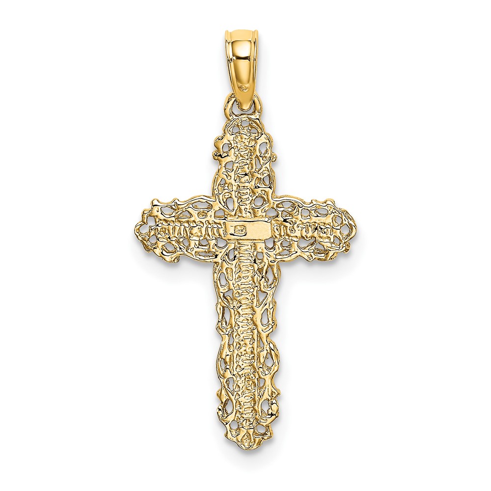 14k White Gold 1/10 carat Champagne Diamond Heart Cross Pendant