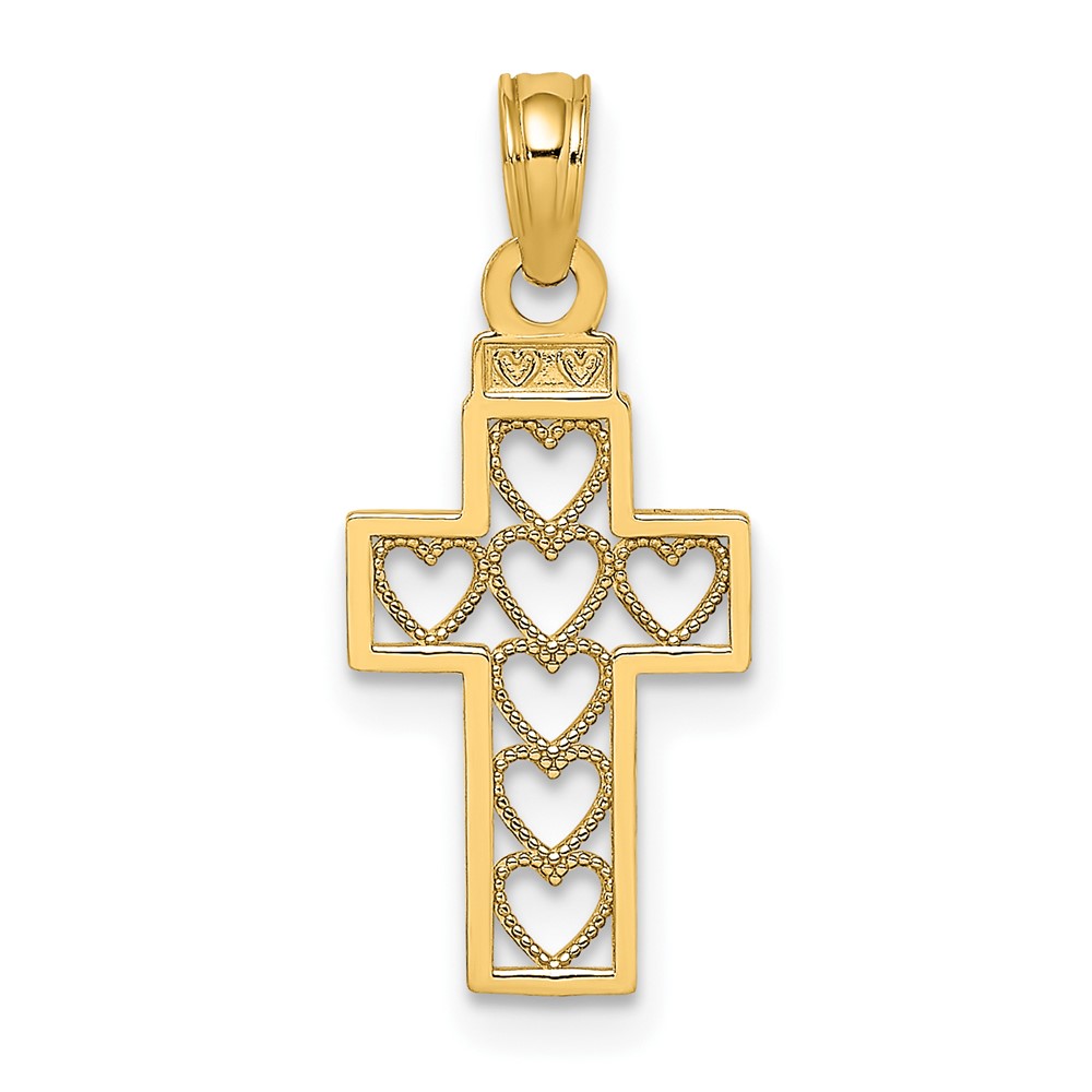 10K Cut-Out Heart Design Cross Charm