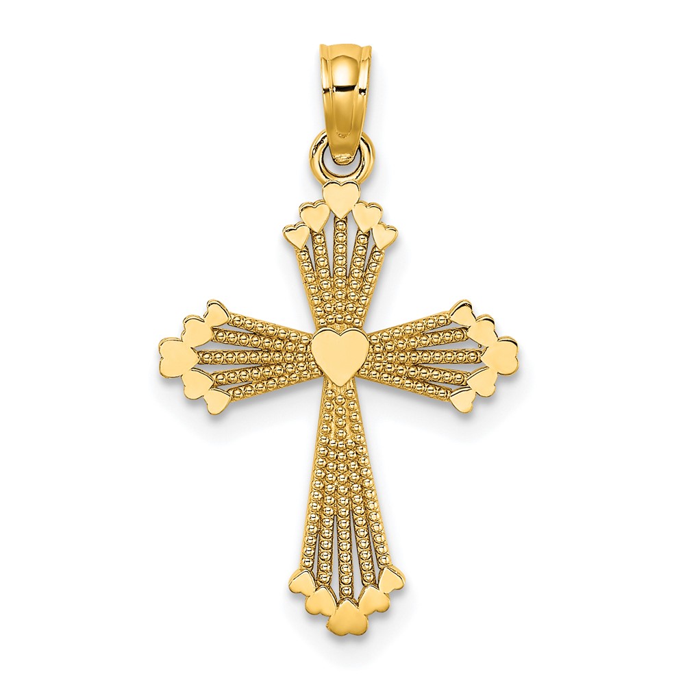 10K Cut-Out Stripes Cross w/ Heart Charm