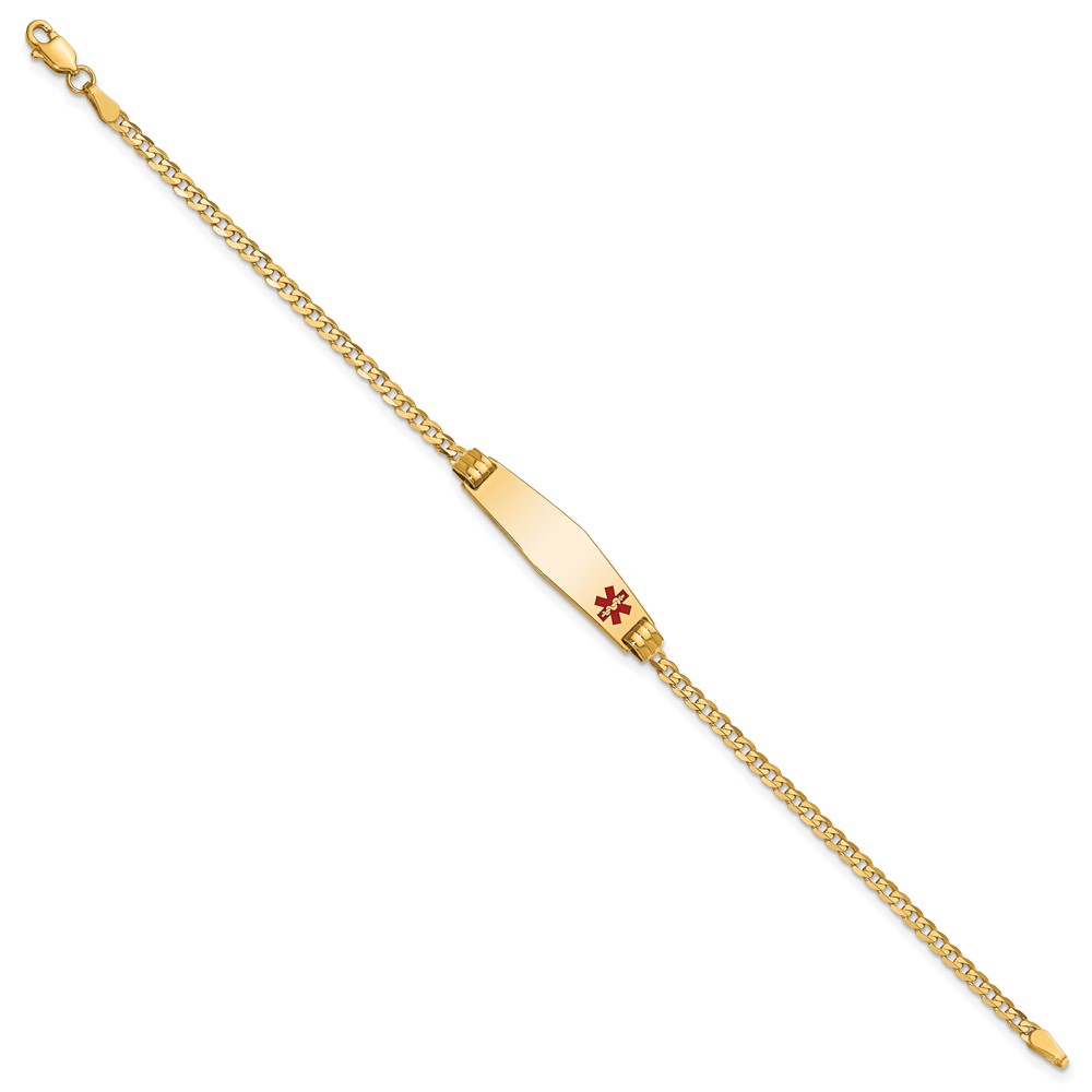 10k Medical Soft Diamond Shape Red Enamel Curb Link ID Bracelet