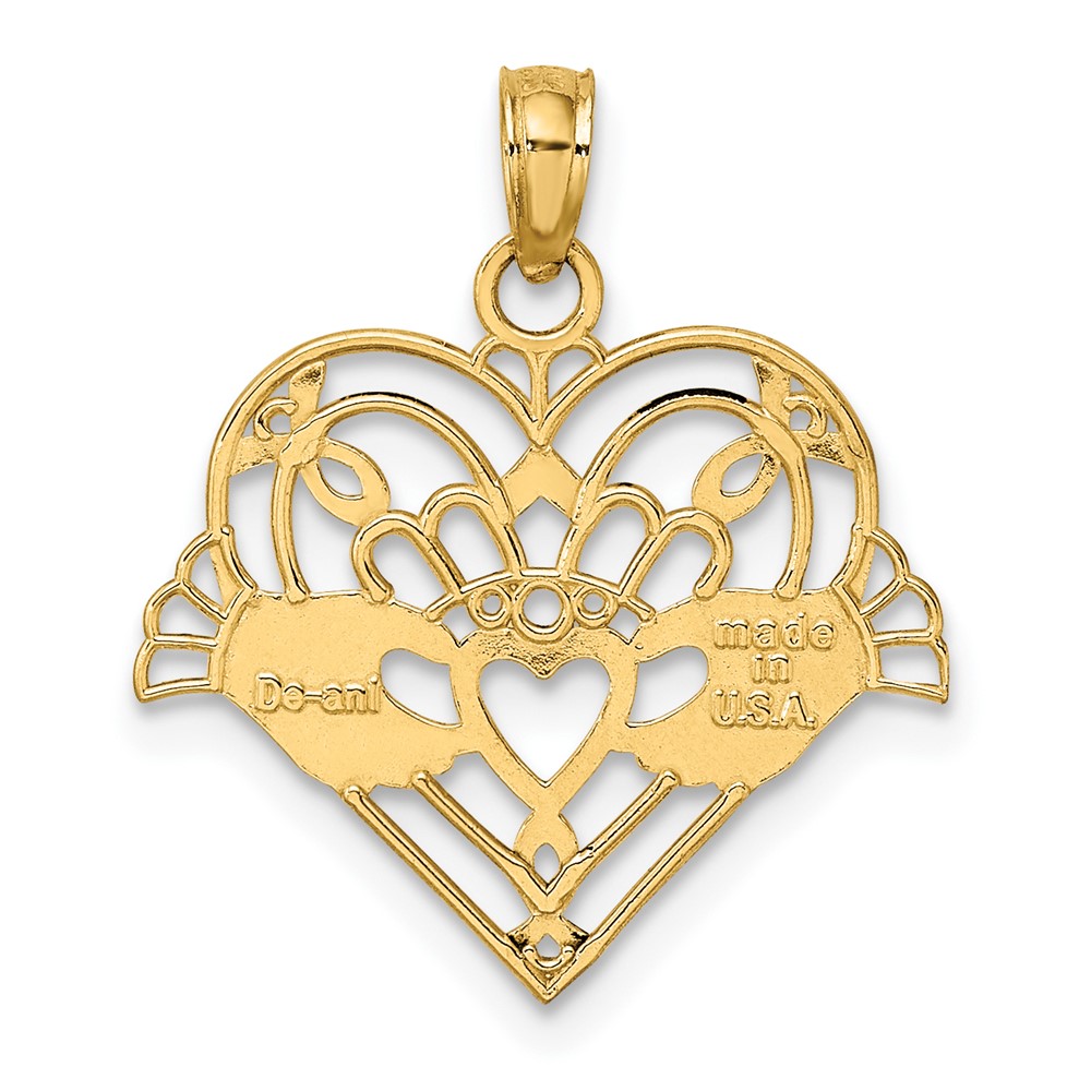10K Polished and Beaded Claddagh In Heart Charm