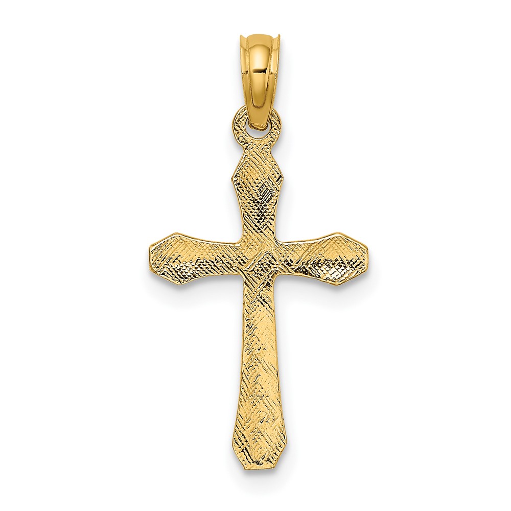 10K Polished and Engraved Mini Cross W/ Flower Charm