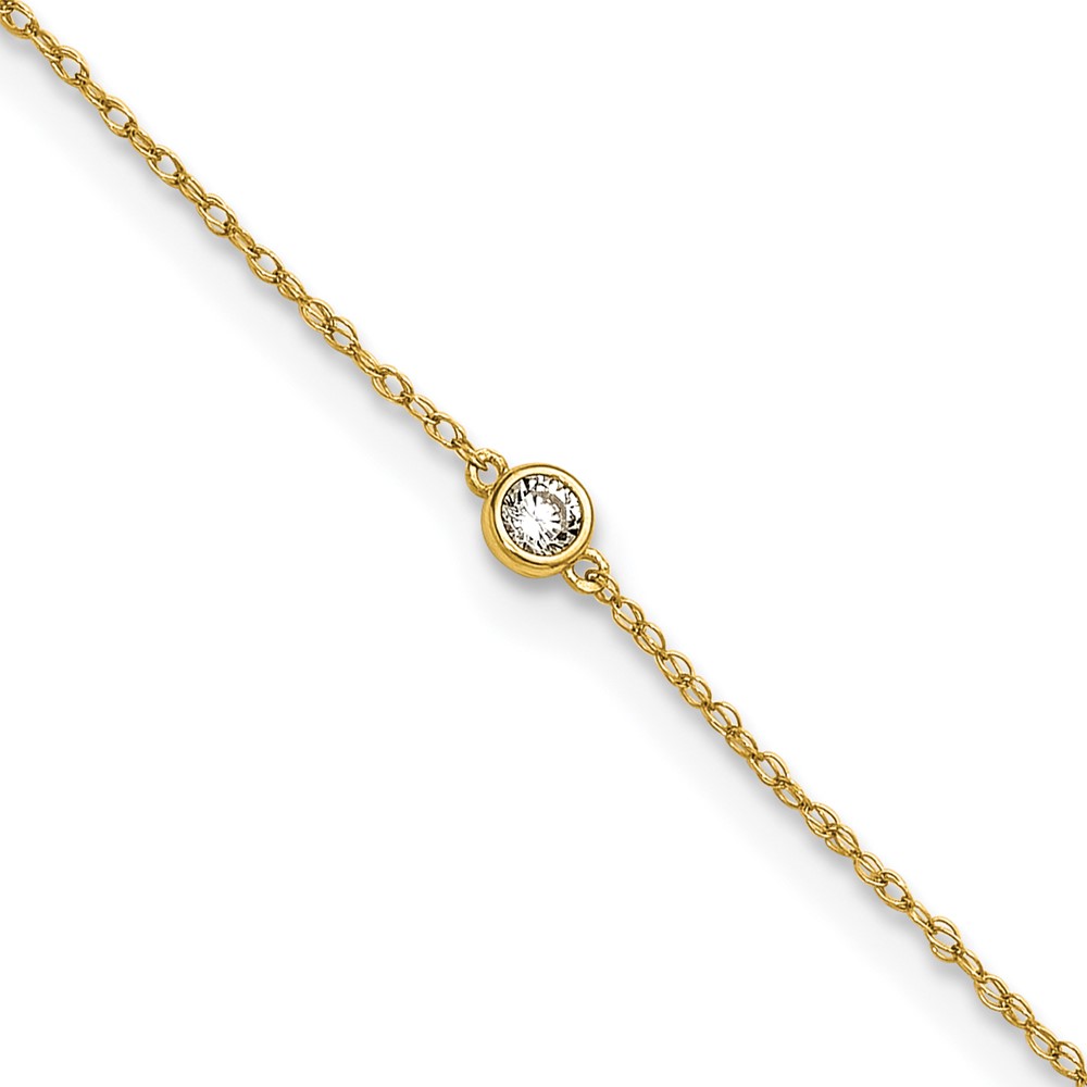 10k Polished Bezel-set 3.7mm CZ Anklet