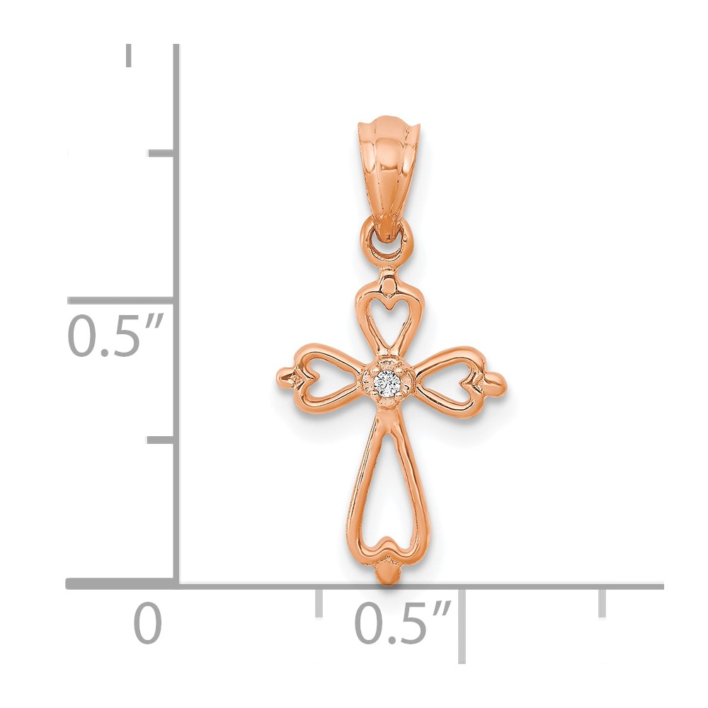 14K Rose Gold Diamond Accented Cross Pendant