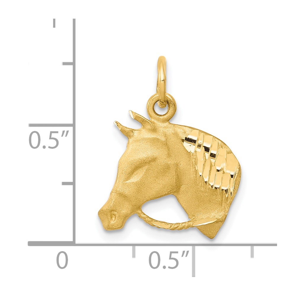 10k Solid Diamond-cut Horsehead in Horseshoe Charm