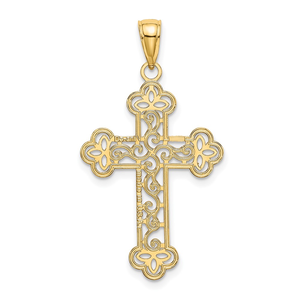 10K Textured Beaded Edge Cross Charm
