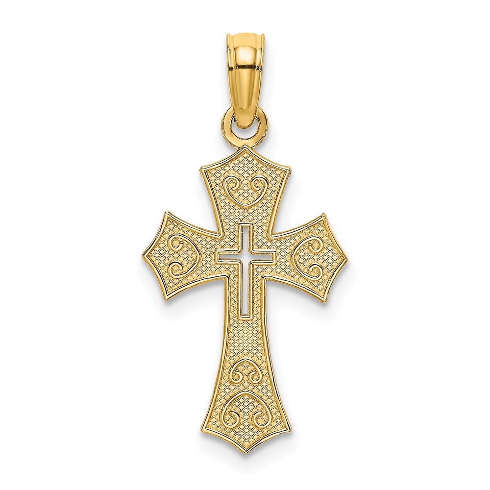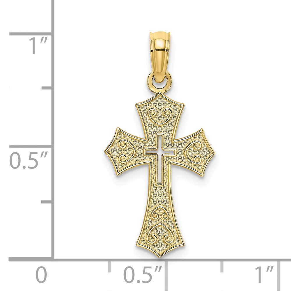 10K Textured Cut-Out Center Cross Charm