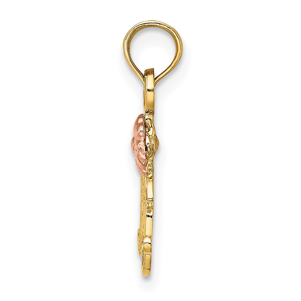 10k Two-Tone Textured Scroll w/ Flower MOM Charm