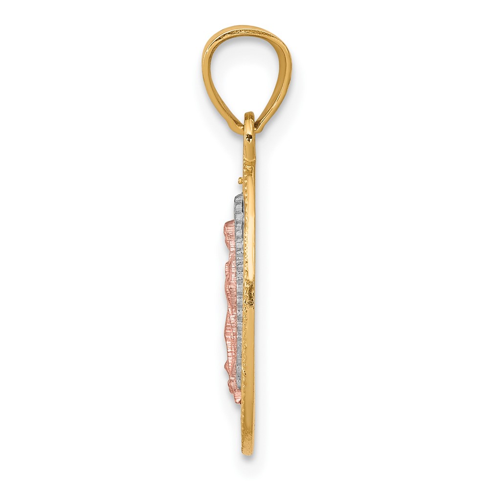 14k With White Rhodium Polished Hearts Interwined Charm