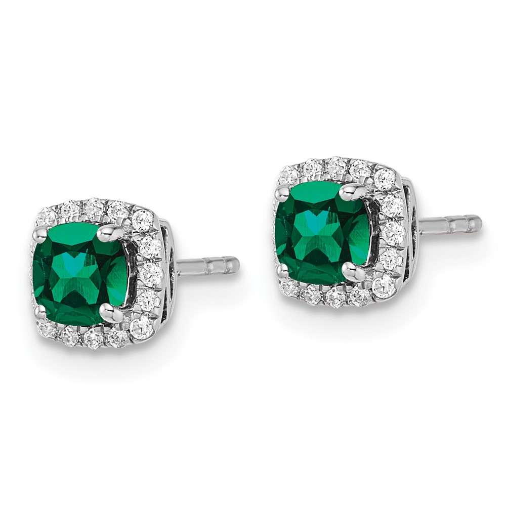 10k White Gold 1/10 carat Lab Grown Diamond VS/SI+ G+ and Created Emerald Complete Square Halo Post Earrings