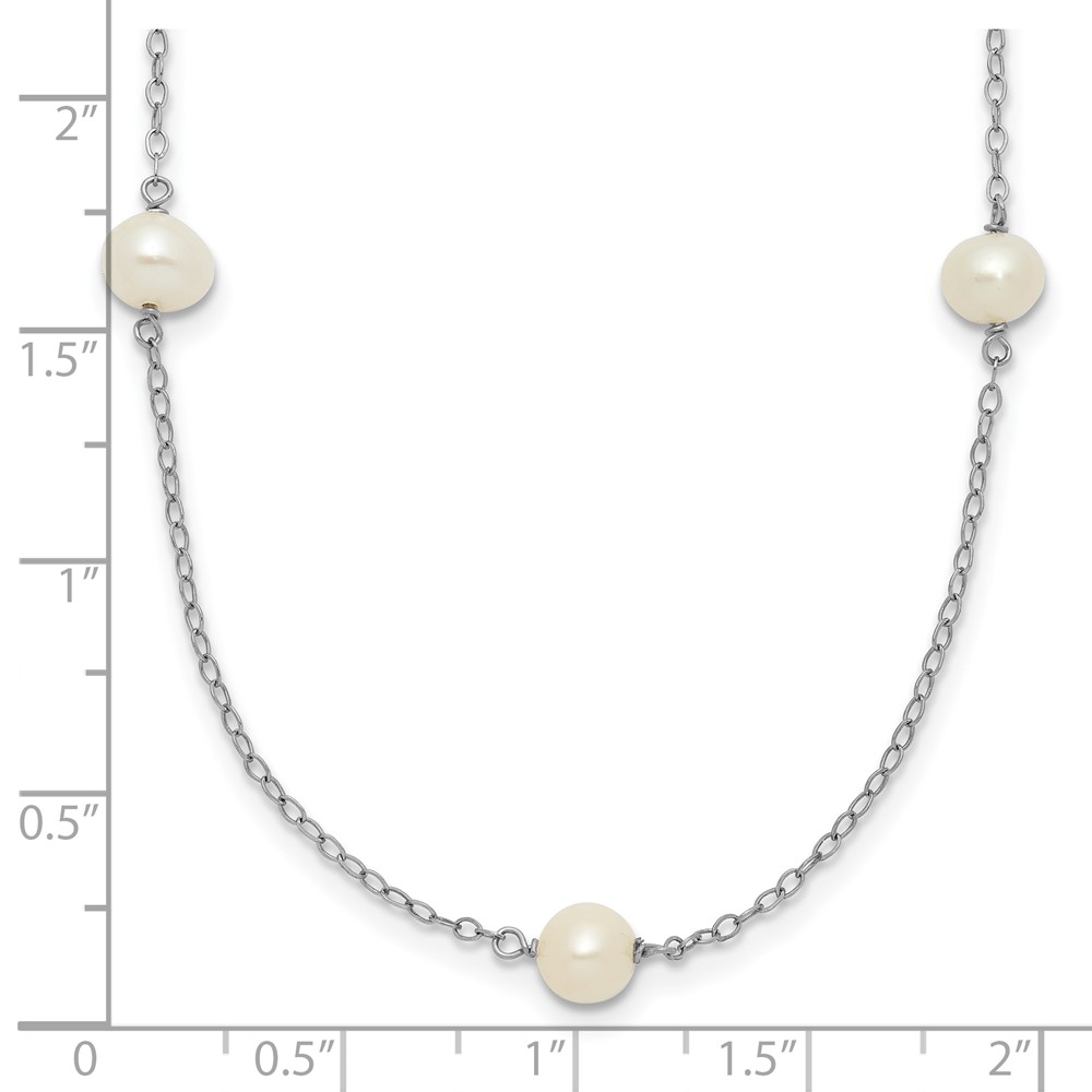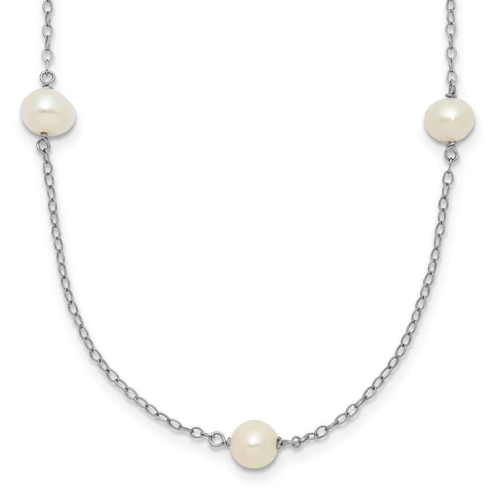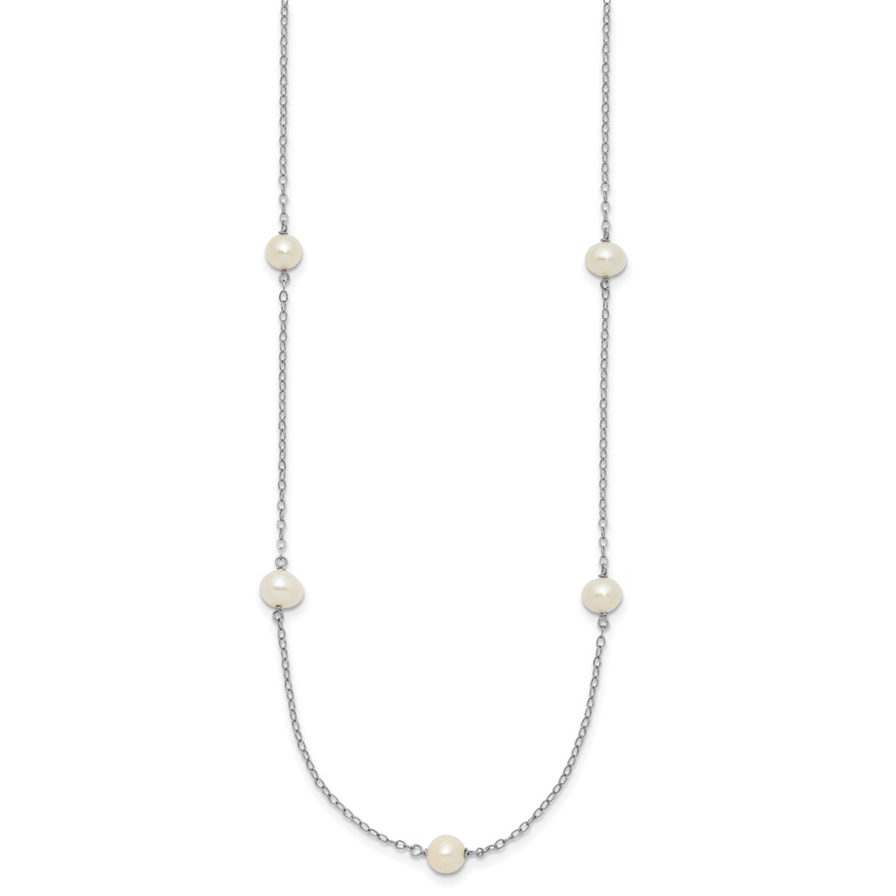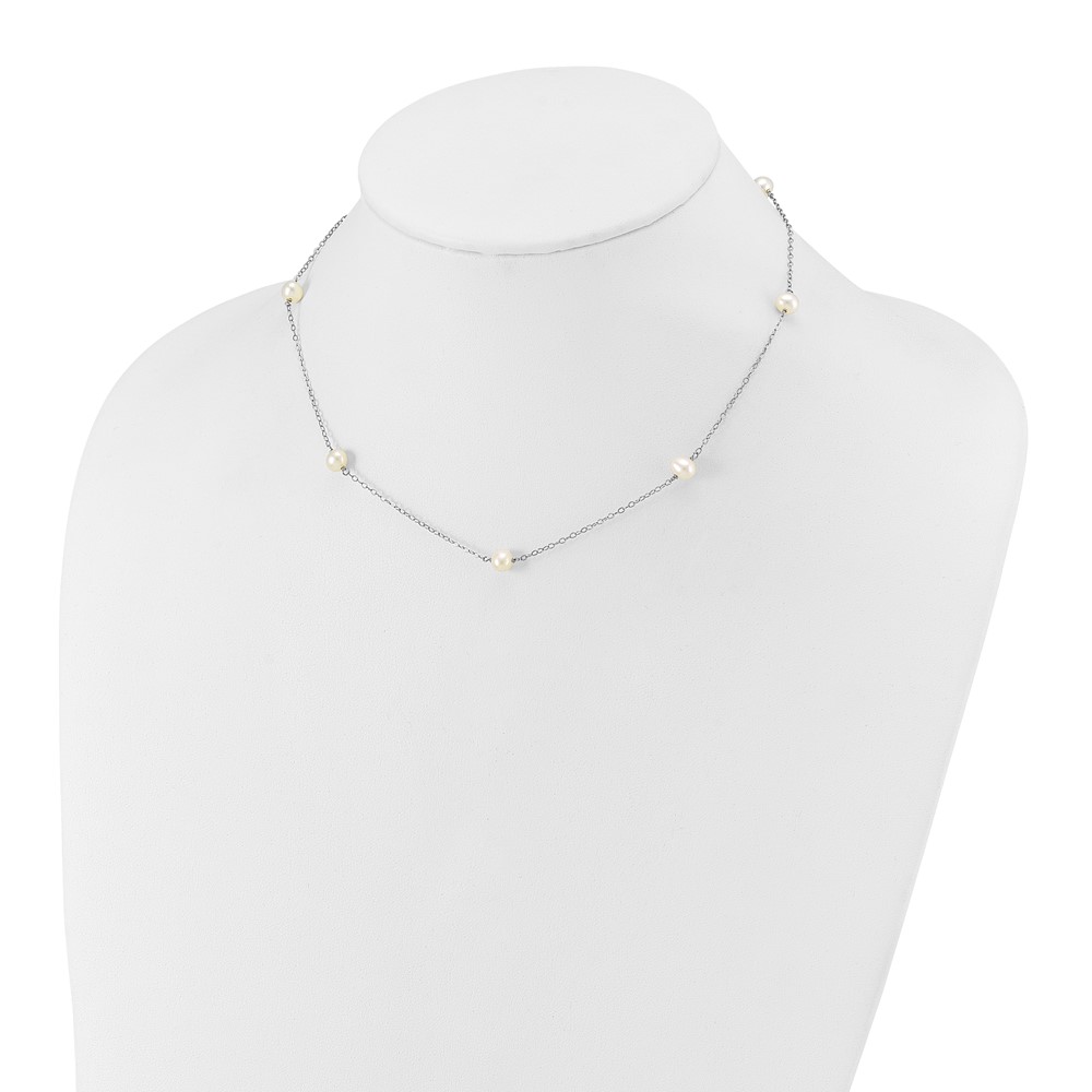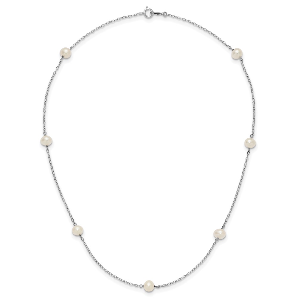 10K White Gold 5-6mm Round White Freshwater Cultured Pearl 7 Station 16 inch Necklace