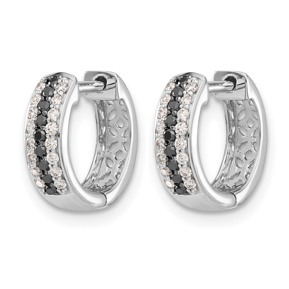 10k White Gold Black and White Diamond Hinged Hoop Earrings