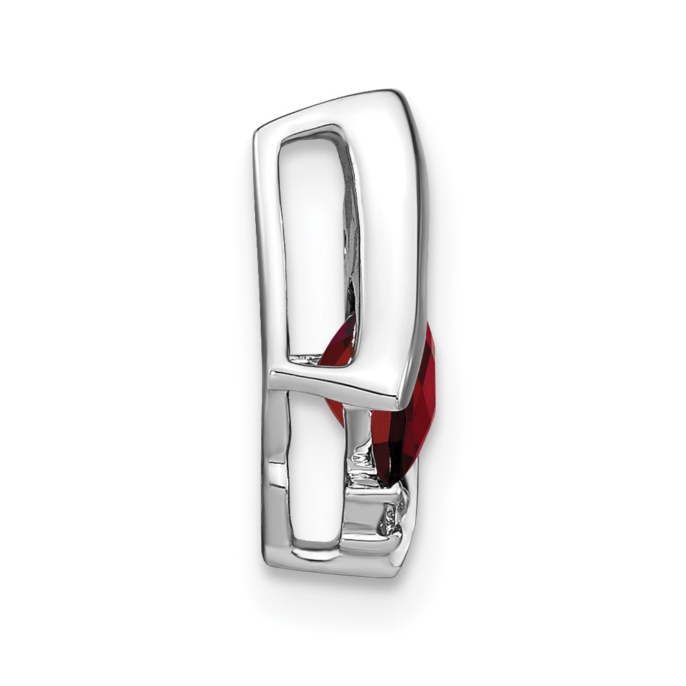 14K White Gold Polished Diamond and Garnet Heart Chain Slide