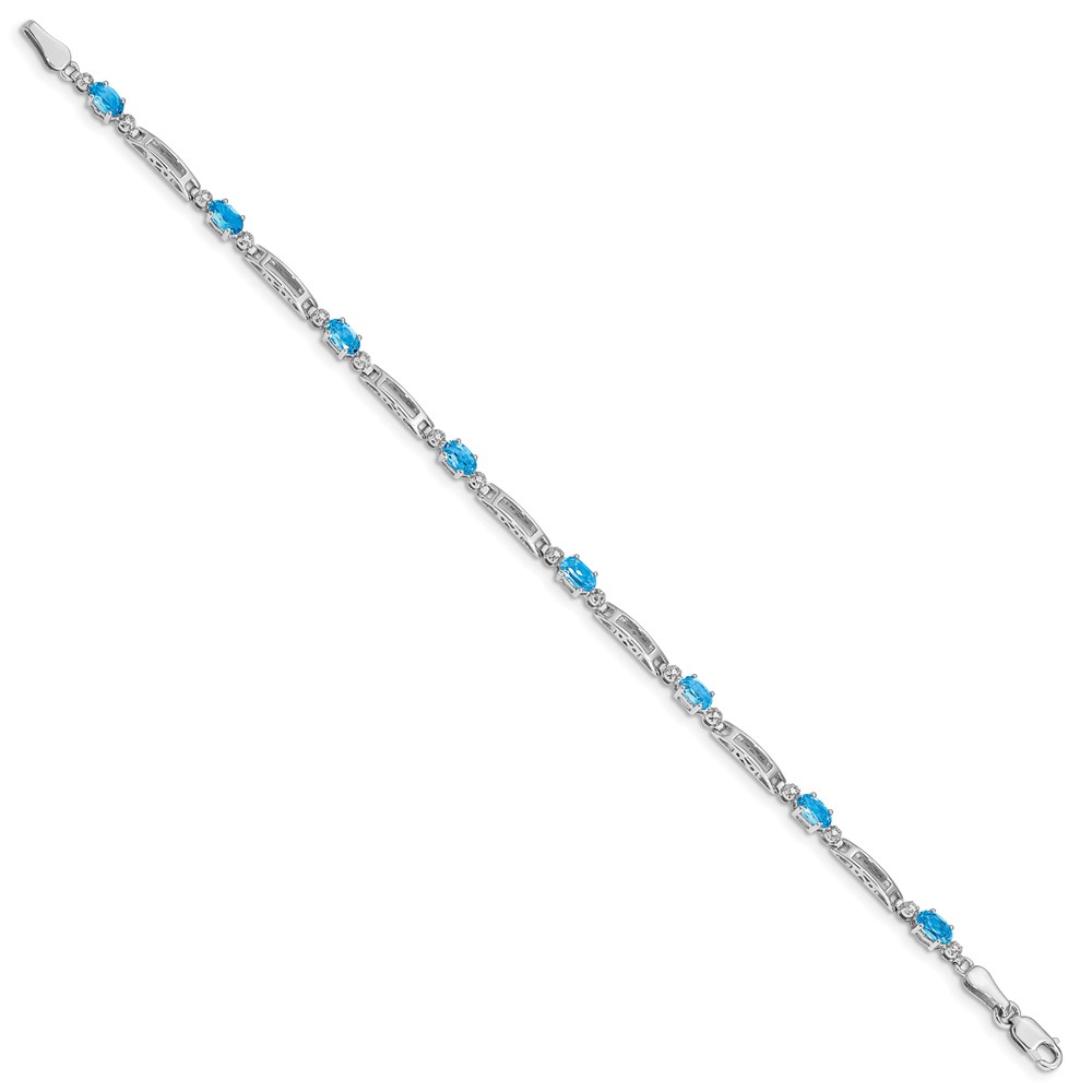 14K White Gold Polished Complete 1/8 carat Diamond Oval Cluster Fancy Link 7 inch Bracelet with 1 inch Extender