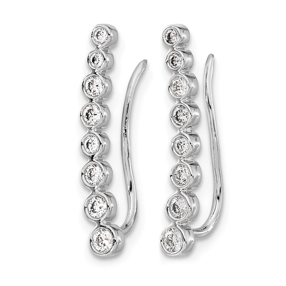 10k White Gold Diamond Graduated Ear Climber Earrings