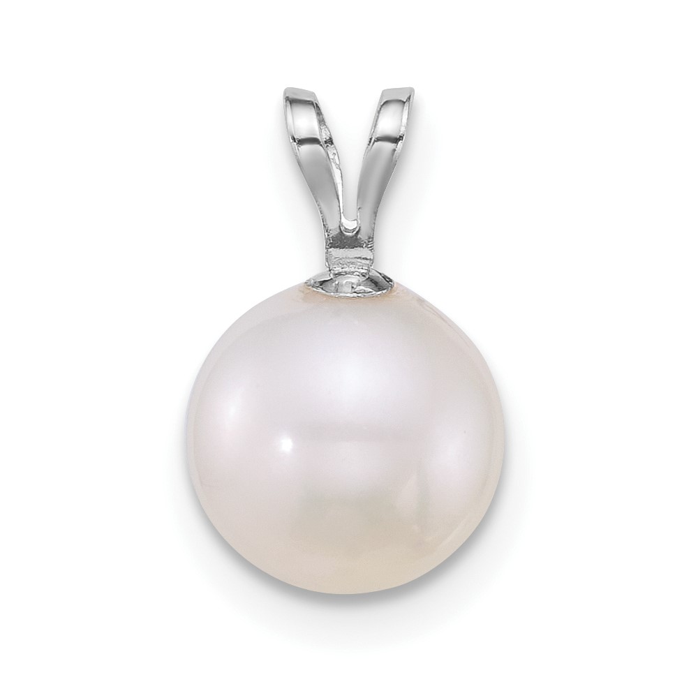 10k White Gold Polished 8-9mm Round White Freshwater Cultured Pearl Pendant