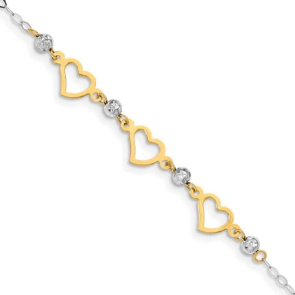 14k 4mm Solid Double Link with Hearts Charm Bracelet
