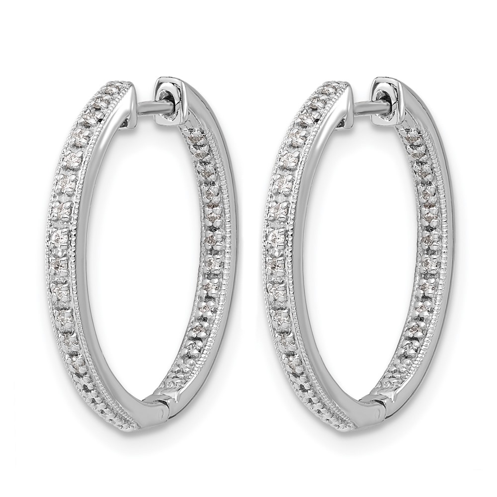 10k White Gold Polished Diamond In/Out Hinged Hoop Earrings