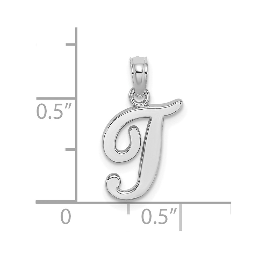 10K White Gold Polished T Script Initial Charm