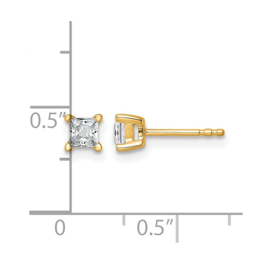 14k 1/2 carat Lab Grown Diamond VS+ F+ Princess Complete Four Prong Stud Earrings