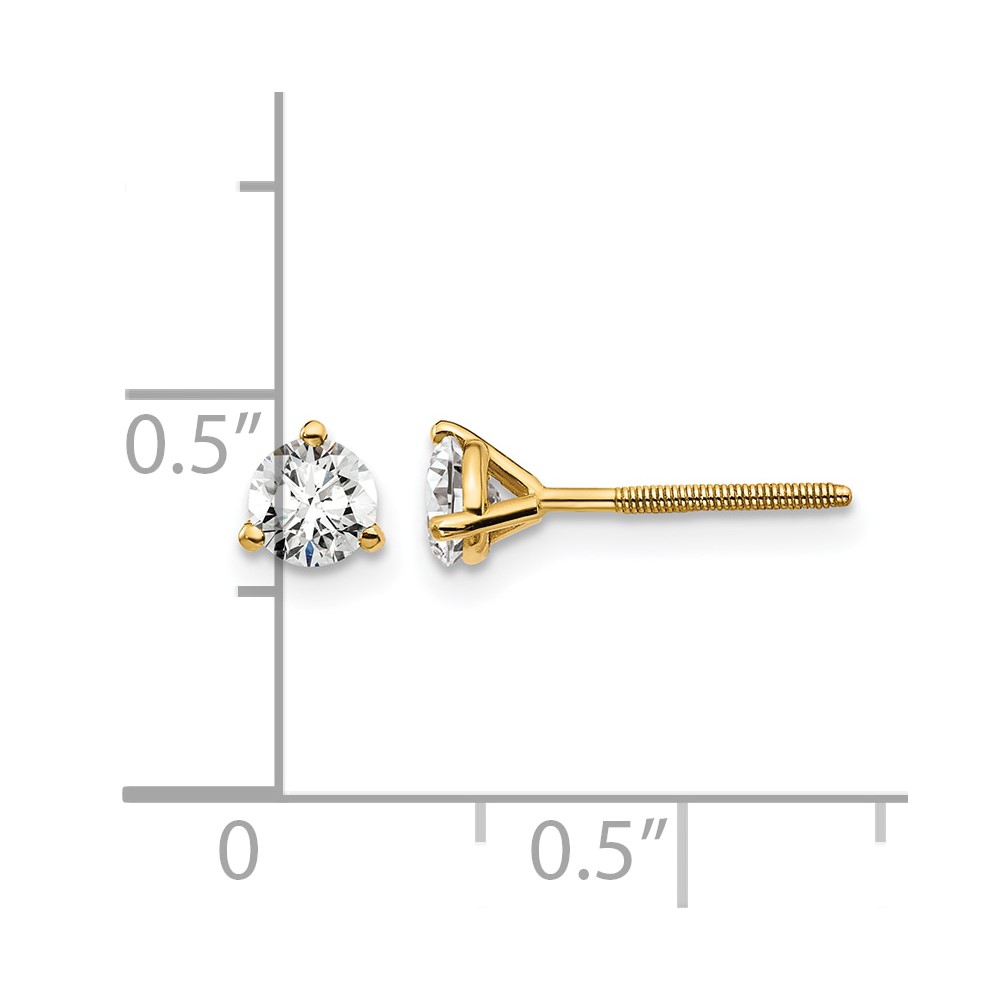 14k 1/2 carat Lab Grown Diamond VS+ F+ Round Complete Three Prong Screwback Stud Earrings