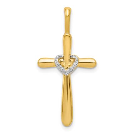 14K White Gold Polished 1/5 carat Diamond Framed Dangle Cross Pendant