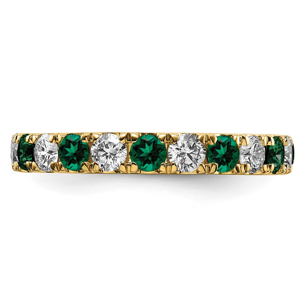 14k 3/4 carat Lab Grown Diamond VS/SI+ G+ and Lab Created Emerald Size 7 Eternity Band