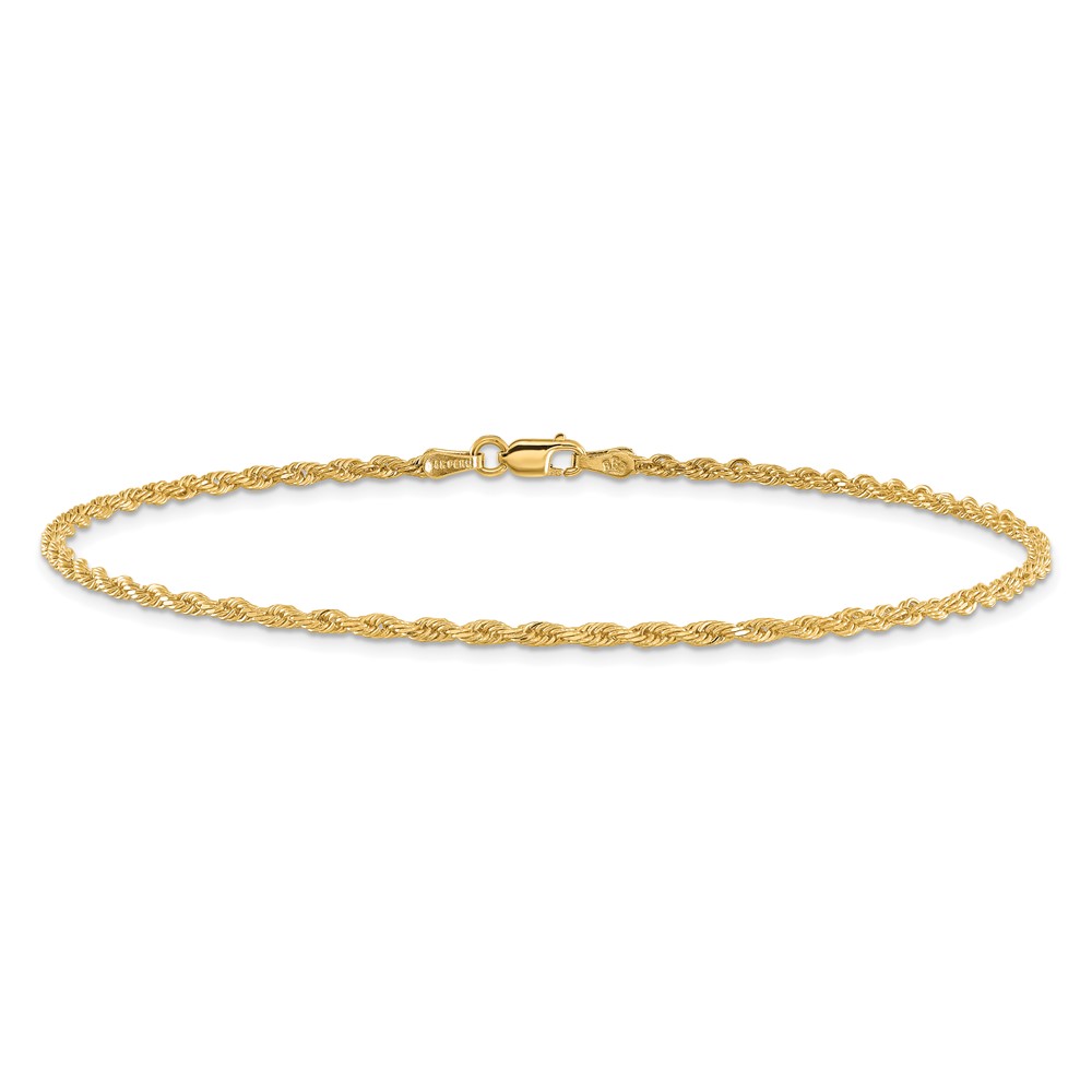 14K 2mm Diamond-cut Rope with Lobster Clasp Anklet