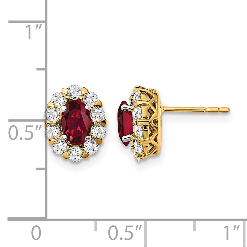 14k 3/4 carat Lab Grown Diamond VS/SI+ G+ and Oval Created Ruby Complete Halo Post Earrings