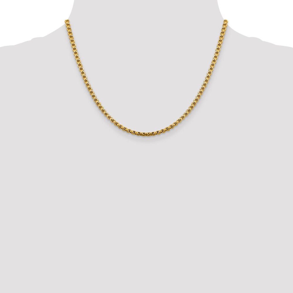 14K 3.6mm Semi-Solid Round Box with Lobster Clasp Chain