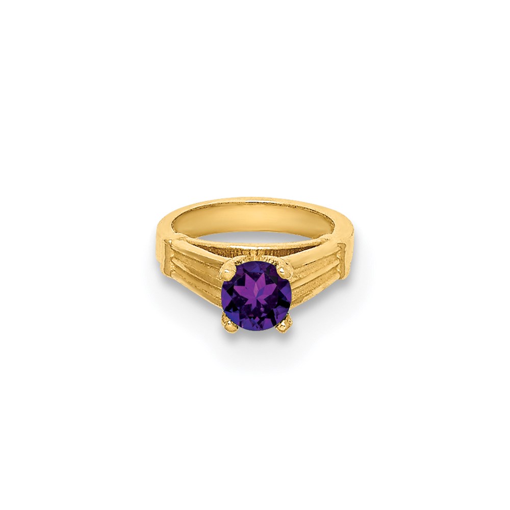 14K 3-D February Ring with Dark Purple CZ Charm