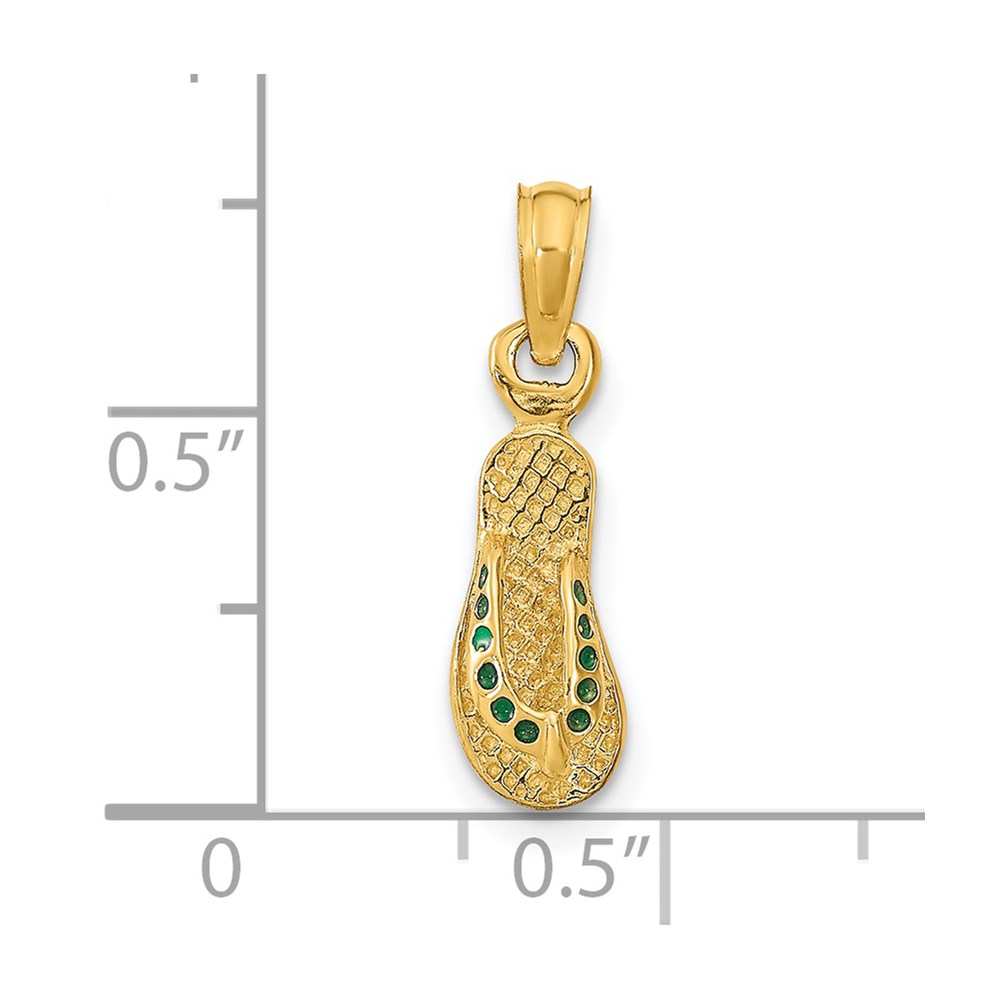 14k 3-D Green Enamel Single Flip-Flop Pendant