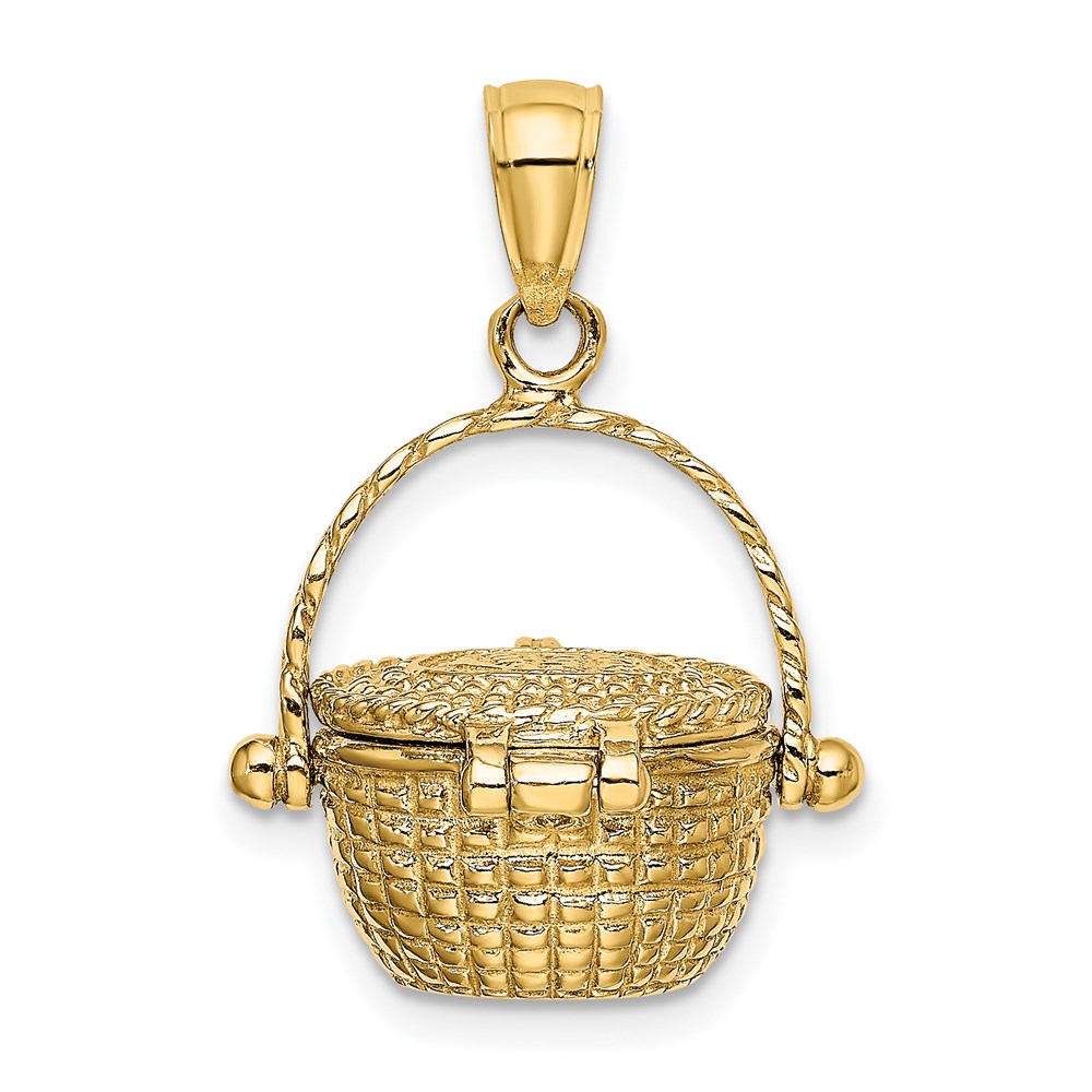 14K 3-D Nantucket Basket with Moveable Lid and Handle Charm