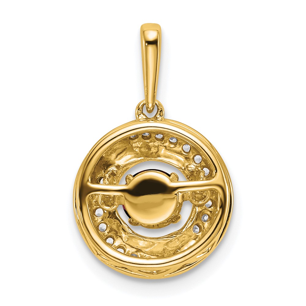 14k 4.5mm Round Moving Vibrant Garnet and Diamond Pendant