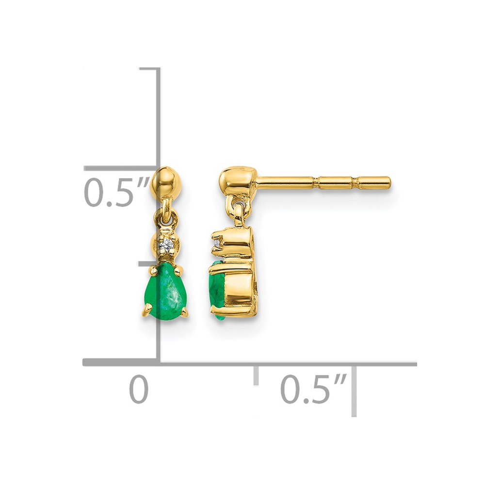 14k 4x3mm Pear Emerald and Diamond Dangle Post Earrings